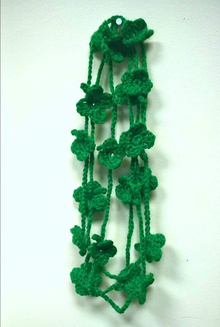 You can either keep on going and make a long clover garland, or keep it shorter and make a necklace or skinny scarf. My three strand necklace has 18 clovers. You can make it as long as you need!