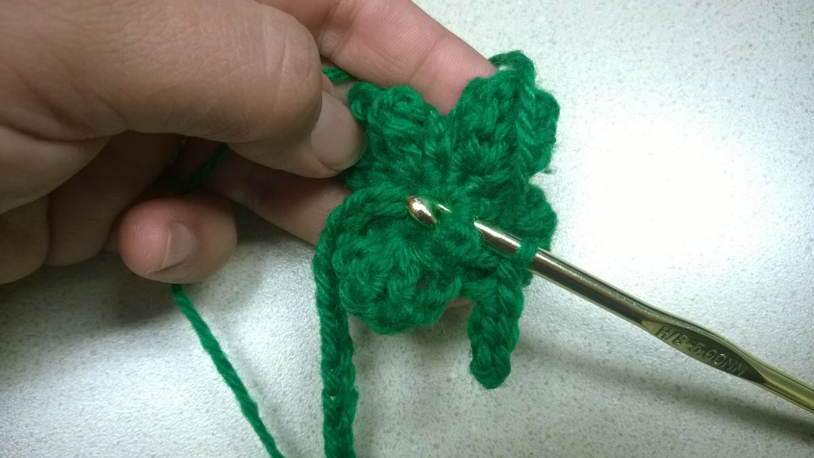 4) You'll want to slip stitch towards the center of the clover to secure the stem and start chaining to the next clover.